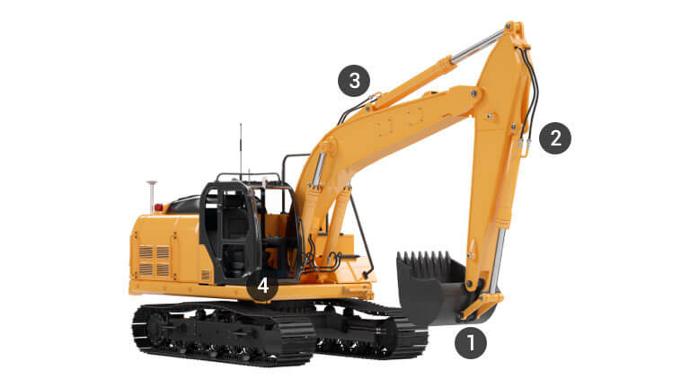 Obtain attitude information. The info will be transmitted to the control terminal, and the coordinates of the excavator bucket teeth are finally obtained through calculation. For general excavators, we have a total of four attitude sensors: