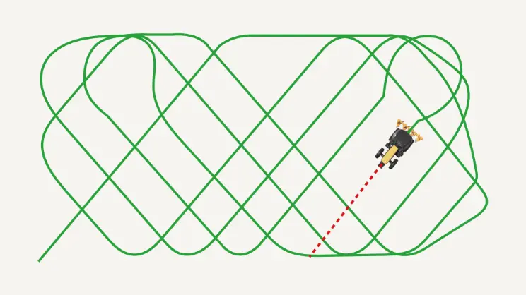 Create perfect diagonal paths to cover your field completely when harrowing, letting you drive the shortest distance without wasting fuel and time.