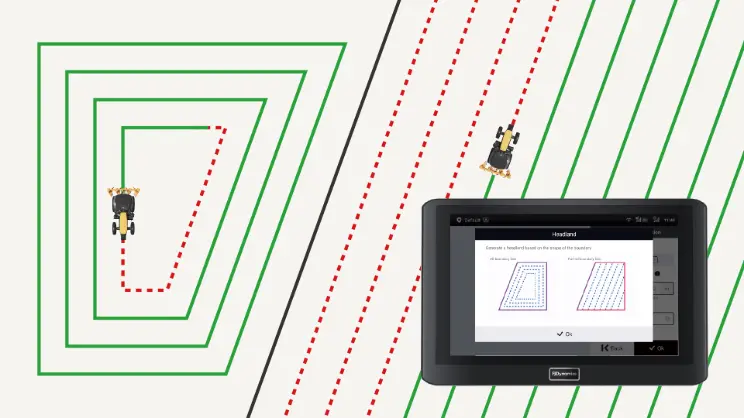 Choose either a full or partial edge (up to 9 paths) of your field to create headlands in different directions, with the screen showing inner areas and headlands clearly.