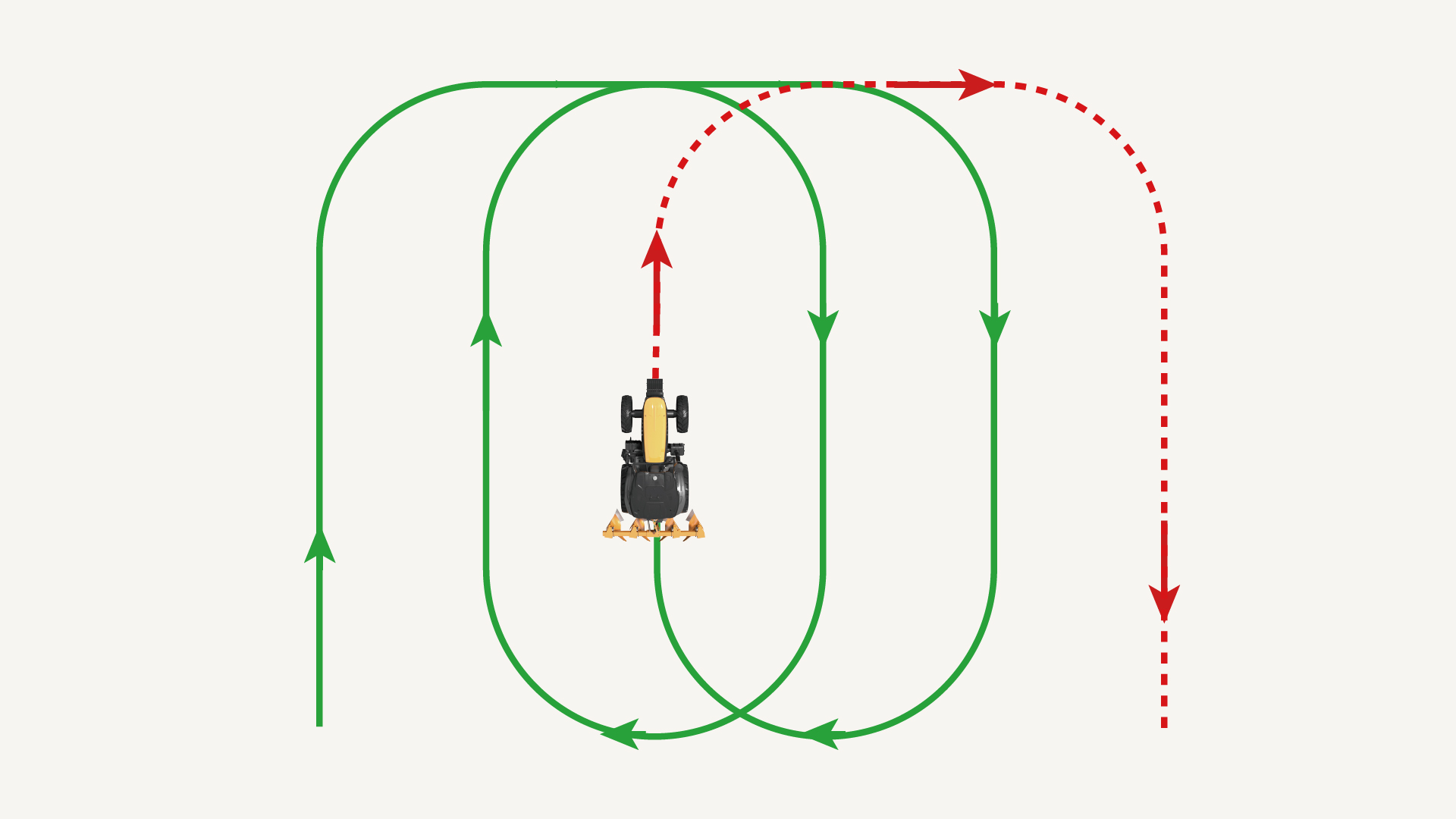 The fishtail-shaped path is a better solution for moving from one row to the next in fields with limited turning space.