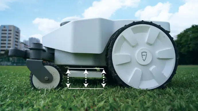 Adjust the mowing height in real time via remote control based on seasonal changes and mowing needs.