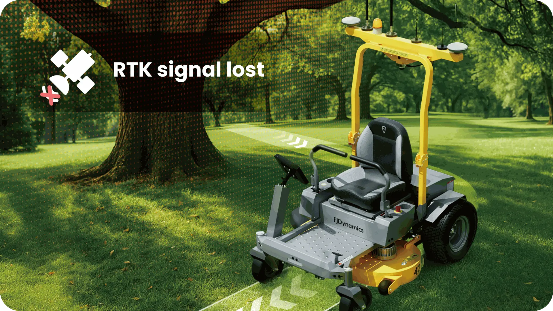 The mower is equipped with our RTK technology to perform unmanned operations even in areas with no satellite signal, such as under trees or near tall buildings.