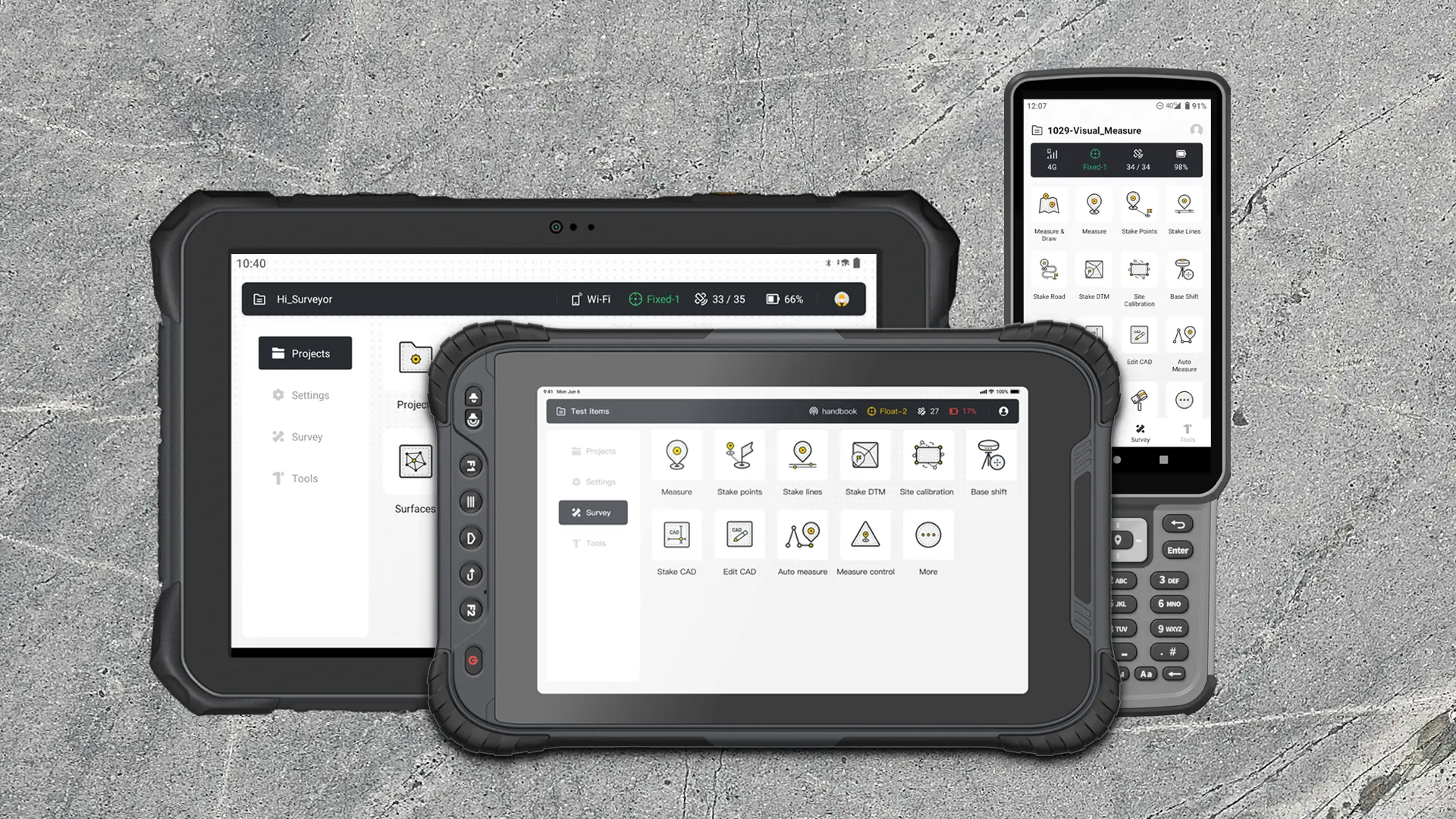 Trion Survey is an app that aids engineers in accurate measurement. It works with FJD Field Controller and other Android devices for effortless survey experiences. It supports internal/external radio and works with CORS stations to satisfy varied needs. The concise interface and easy-to-understand icons make the measurement intuitive more than ever.
