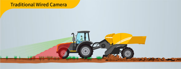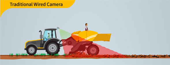 Only can be installed around the tractor cab. Limited field of view, a large number of locations to be monitored are obscured.